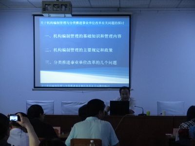 在今年5月9日开班的全区2012年组工干部培训班上,区编办为全体学员开设了《关于机构编制管理与分类推进事业单位改革》的专题讲座,使全区组织人事干部加深了对机构编制管理和事业单位分类改革工作的认识和理解,取得了良好效果。